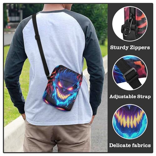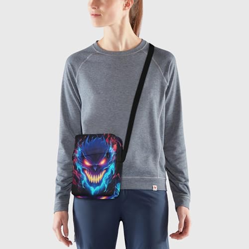 Crossbody Bag Blue Flame Monster Messenger Bag for Women Men Purse Shoulder Bag Satchel Bag with Adjustable Strap 214B1011