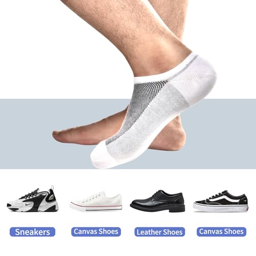 • 【Premium-Quality】: The no-show socks for men are mainly made with breathable cotton material and adopt tight knitting technology. Besides being extremely long-lasting, this qualitative material also ensures feet are dry and fresh and provides better breathability. Casual invisible socks are soft, breathable, snug, and comfortable. A seamless toe will also reduce the discomfort of wearing socks.