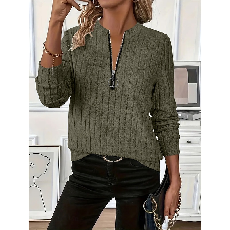 Women's Pullover Sweatshirt Plain Casual Long Sleeve V Neck Regular Tops Street Dailywear Zipper Black White Red Blue Green Fall Winter 1