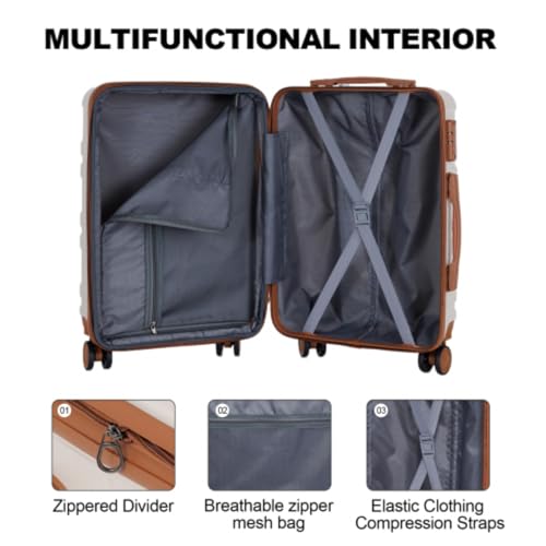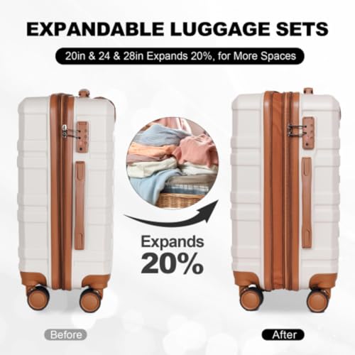 Luggage Set 3 Pieces, Luggage, 20", 24", 28" Carry-on Luggage, Dotted Texture, TSA Lock, Aluminum Telescopic Handle, PC+ABS Hard Shell Luggage, Beige 5