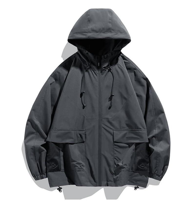 HOT ! Dninmim Men's Outdoor Hooded Zip-Up Jacket Patchwork Casual Loose Windbreaker Couple Thin Cardigan