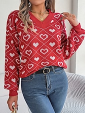 More information about Women's Sweater Casual Soft Heart Ribbed V Neck Knitted Long Sleeve Regular Tops Knit Outdoor Daily Weekend Pink Red Fall Winter