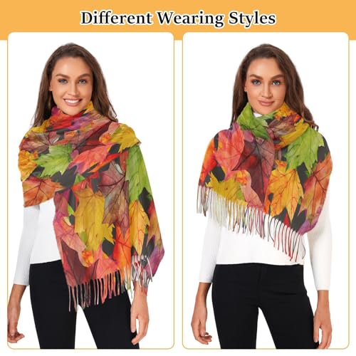 VIGTRO Women Wrap Pashmina Shawl Autumn Maple Leaves Cashmere Feel, Watercolor Fall Foliage Winter Warm Long Scarf with Tassels for Evening Dress & Wedding 5