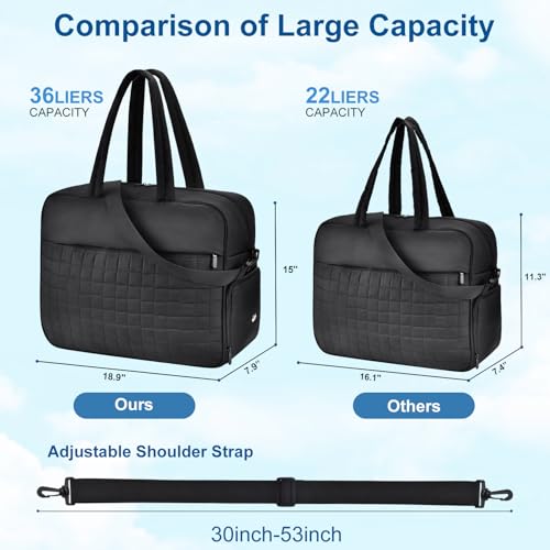More information about Felipe Varela Large Puffy Tote Bag, Gym Bags for Women with Shoe Compartment, Weekender Overnight Lightweight Carry on Puffer Duffle Bag for Travel (Black,36L)