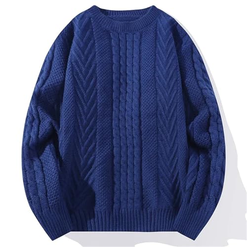 Men's Knitted Casual Sweater Round Neck Twists Weaving Pink Pullover Fashion Warm Tops 1