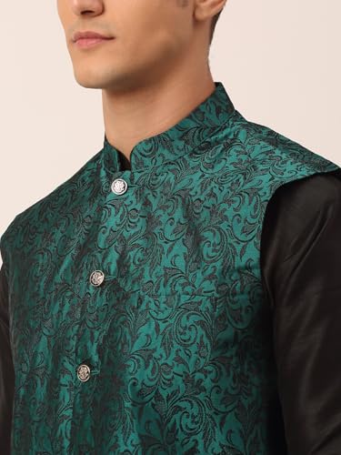 • Sophisticated ethnic style for every celebration – This Jacquard Nehru Jacket for Men instantly elevates your ethnic look with its rich brocade pattern and sharp mandarin collar. Perfect for weddings, festivals, and traditional events.