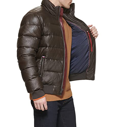 Tommy Hilfiger Mens Tommy Hilfiger Men's Midweight Quilted Faux Leather Bomber, Saddle, Medium 5