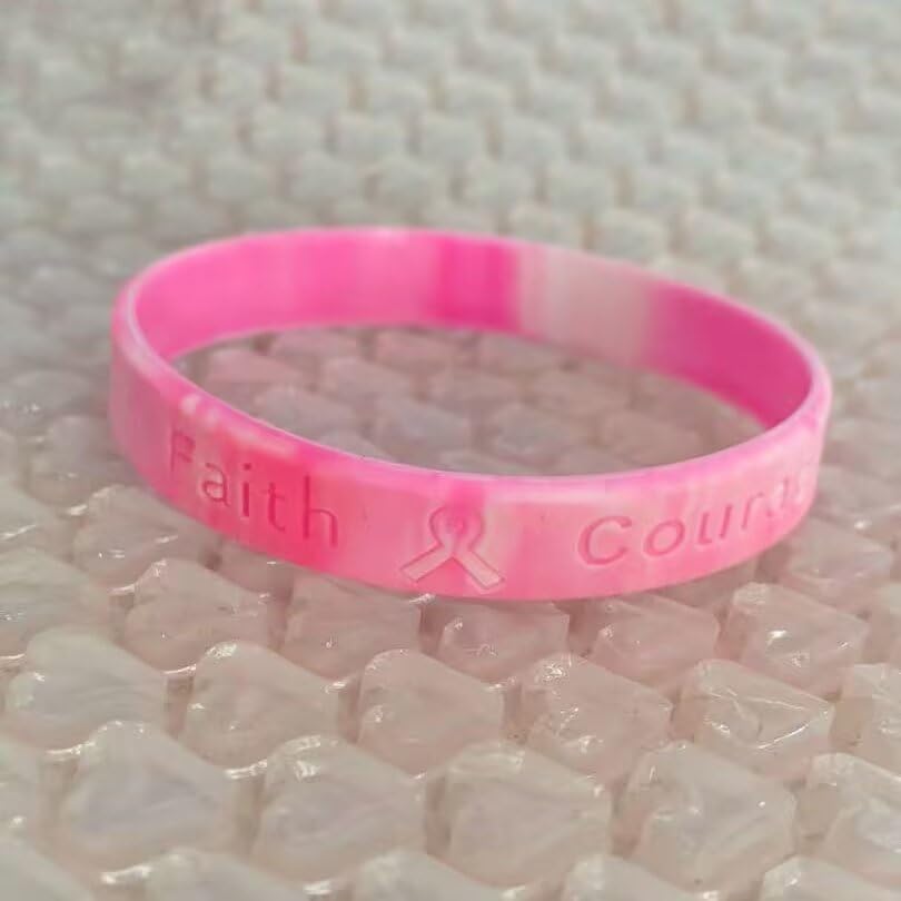 4 Pcs Breast Cancer Awareness Bracelets for Women Pink Ribbon Silicone Wristbands Bracelets Letter Hope Faith Courage Inspiring Jewelry Gifts Accessories 7