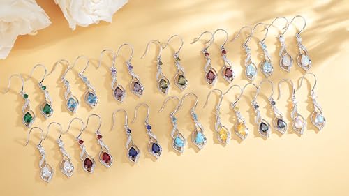 FANCIME Gift for Women Birthstone Dangle Earrings for Her Teardrop Birthstone Earrings S925 Sterling Silver infinity Love Birthday Gifts for Mom Women 5