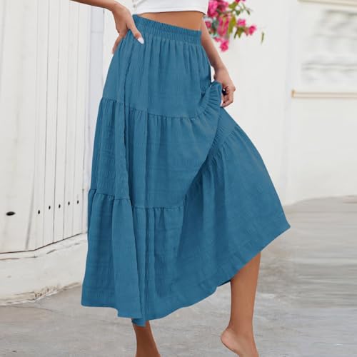 HOT ! Women's Tiered Maxi Skirt Casual Fashion Flowy A-Line Elastic High Waist Trendy Beach Long Skirts with Pockets