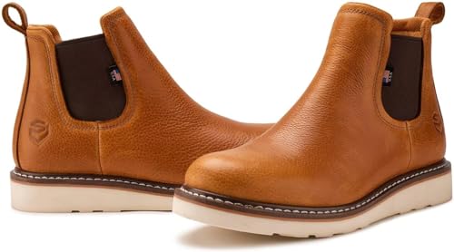 More information about SUREWAY Men's Slip On Chlesea Work Boots for Men - Lightweight Full Grain Leather,Slip-resistant Wedge Sole