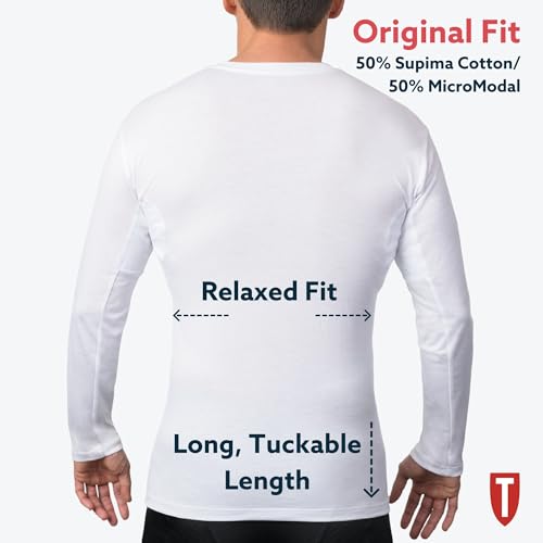 • Versatile Sweat & Odor Defense T-Shirt: Our stylish men's long sleeve v-neck undershirt complements any outfit while discreetly keeping sweat and body odor at bay, giving you the confidence to wear any shirt without fear of sweat marks; These original fit undershirts are made from 50% premium supima cotton and 50% micromodal, exclusive of the underarm pads inner layer and feature a tagless, lay-flat collar for a seamless, ultra soft, & smooth fit