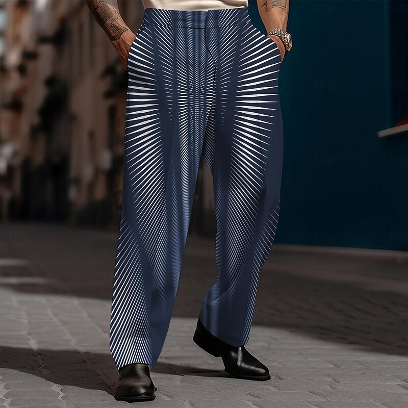 HOT ! Men's Geometric Dress Pants Mid Waist Business Casual Wedding Dailywear Pocket Straight Leg Trousers Summer Spring Fall 3D Print Black Wine Blue