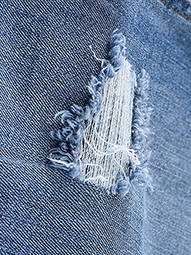 FEESHOW Girls Kids Ripped Distressed Denim Pants Jeans Kids Wide Leg Elastic Waistband Casual Loose Pants 6
