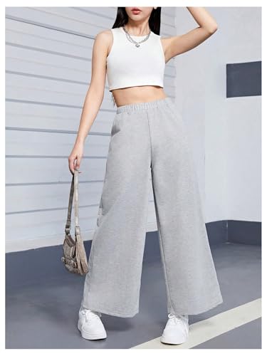 HOT ! SweatyRocks Girl's Wide Leg Sweatpants Elastic High Waisted Workout Jogger Pants
