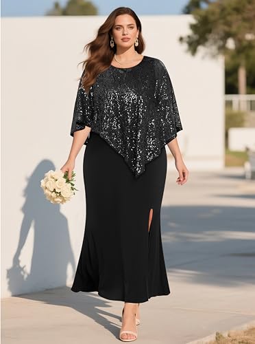HOT ! Plus Size Formal Dress - Wedding Guest Long Evening Cocktail Mermaid Dress with Sequin Overlay Cape