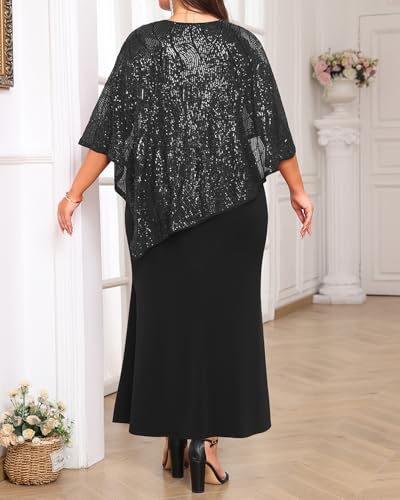 Plus Size Formal Dress - Wedding Guest Long Evening Cocktail Mermaid Dress with Sequin Overlay Cape 1