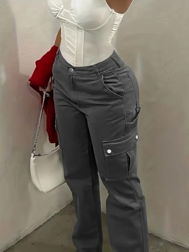 HOT ! Women's Cargo Pants Jeans High Waisted Baggy Y2K Stretchy Wide Leg Straight Casual Pants Streetwear with 6 Pockets
