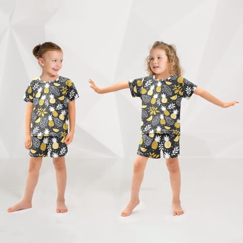 ALAZA Tropical Pineapple Black Fruit Pajamas Short Sleeve 2 Piece Sleepwear Top and Bottom Pajama Set Unisex 2