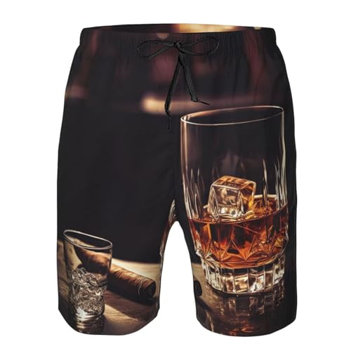 Men's Swim Trunks Whisky and Cigar Quick Dry Board Shorts with Pocket Swimsuit Swimwear for Men Beach Shorts 1