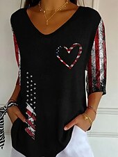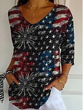 More information about American Women's Blouse Floral Graphic Bohemia Vintage Tropical 3/4 Length Sleeve V Neck Regular Tops Daily Buttons Print Black Dusty Blue Light Blue Summer Spring