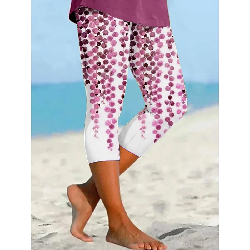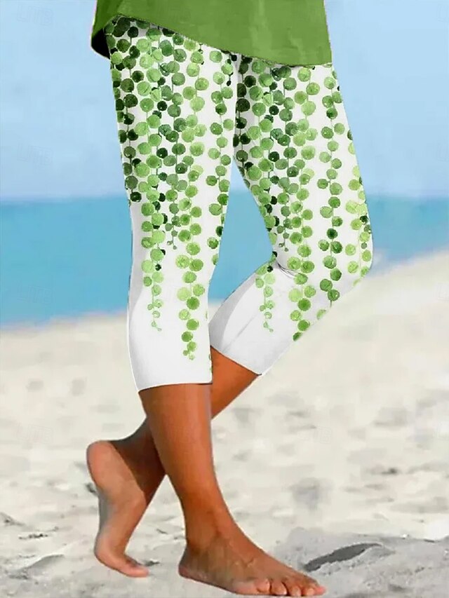 More information about Women's Capri Pants Leggings Vacation Vintage Ethnic Style Calf-Length High Waist Graphic Leaf Gradient Soft Comfortable Breathable Stretchy Vacation Street Causal Sapphire Light Green Fuchsia Summer