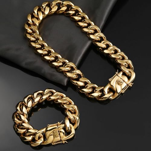 More information about SDA 22mm Cuban Link Chain Necklace, 18K Real Gold Plated Stainless Steel, Chunky Choker for Men and Women, Waterproof