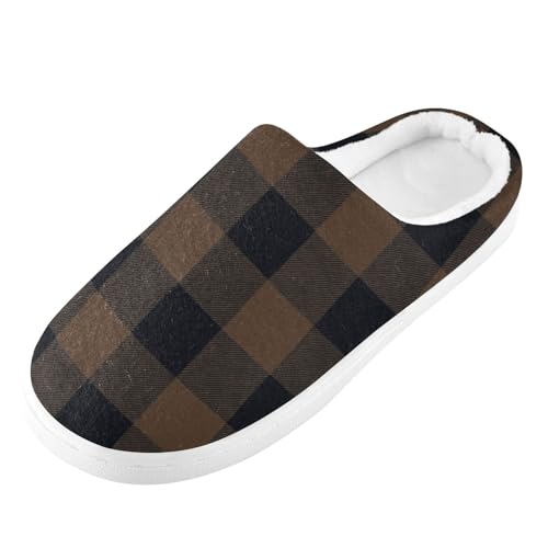 HOT ! JUNZAN Brown Black Gingham Buffalo Plaid Women Home Cotton Slippers Breathable Memory Foam Travel Slippers for Indoor Christmas Presents 6-7