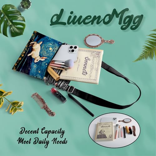 Starry Sky Bunny Messenger Bag Small Ethnic Pattern Printed Adjustable Strap Crossbody Zipper Pouch Starry Sky Bunny Phone Organizer Wallet Cute Shoulder Handbag for Women 7