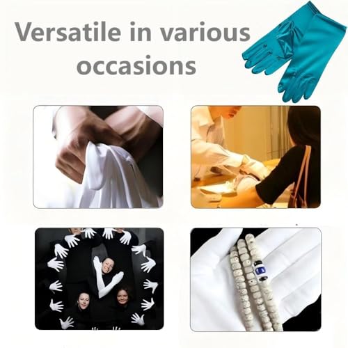 Bridal Shiny Stretch Satin Dress Gloves Wrist Length Theatre Gloves-Lake blue 4