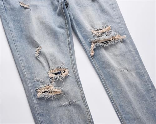 Fabric type: 100% CottonCare instructions: Machine WashOrigin: ImportedClosure type: ButtonMaterial: denim with distressed, washed finish. Durable fabric suitable for everyday wear. Ideal for casual, streetwear, and hip-hop styles. Comfortable and breathable for all-day wear.Design: Features exceptional distressed details, including frayed edges, holes, and graffiti prints. Available in a variety of washes, including blue, black, and khaki, with wide leg and baggy fits.Fit: Relaxed, loose fit perfect for casual wear. Available in various leg styles: straight, bootcut, flared, and wide leg. Designed to provide comfort and mobility throughout the day.Occasions: Ideal for casual wear, street style, and hip-hop fashion. Perfect for summer, fall, and spring. Can be worn for a variety of occasions including daily outings and parties.Care Instructions: Machine washable for easy maintenance. Follow care instructions to preserve the distressed look and keep the fabric soft. Avoid bleach to maintain color integrity. Perfect for everyday use. premium materials and excellent craftsmanship ensure long-lasting durability.