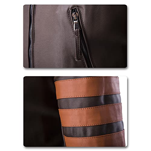 • Men's Faux Leather Bomber Jacket Brown Costume Fashion Slim Fit Punk Stylish Motorcycle Biker Coat