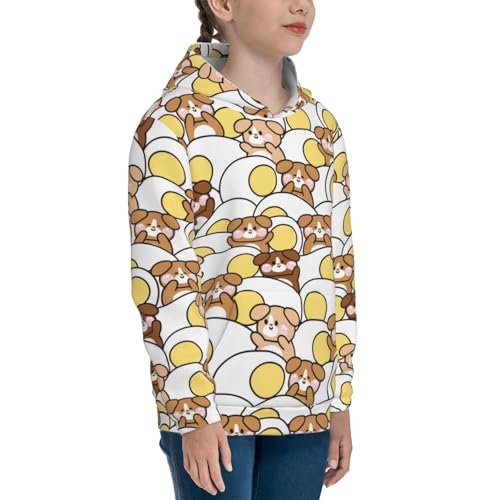 Cute Dog with Big FFried Egg Kid Hoodies Boys Sweatshirts Girls Pullover with Pocket 7