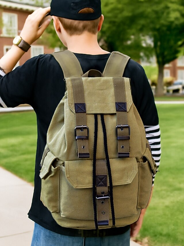 Men's Vintage Canvas Backpack – Large-Capacity Casual Travel Bag for College Students, Outdoor Hiking & Daily Commute 10
