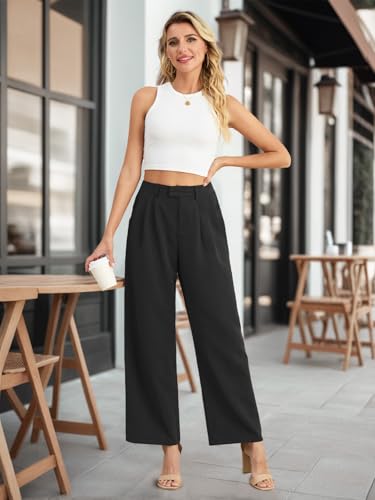 HOT ! Feiersi Women's Wide Leg Pants Casual High Waisted Slacks Straight Dressy Pants Palazzo Trousers with Pockets