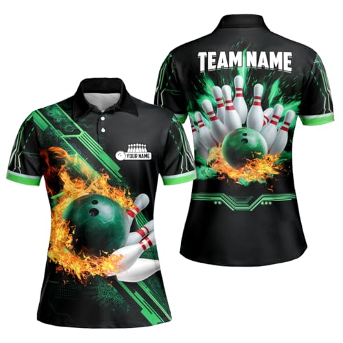 DILYPOD Personalized 3D Bowling Polo Shirt, Custom Name Bowling Shirts for Men Women, Bowlings Jersey, Unisex Shirt 3
