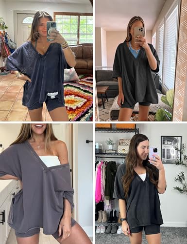 LTSCNRM 2 Piece Outfits for Women Reversible Oversized T Shirt Biker Shorts Sets Workout Tracksuit 5