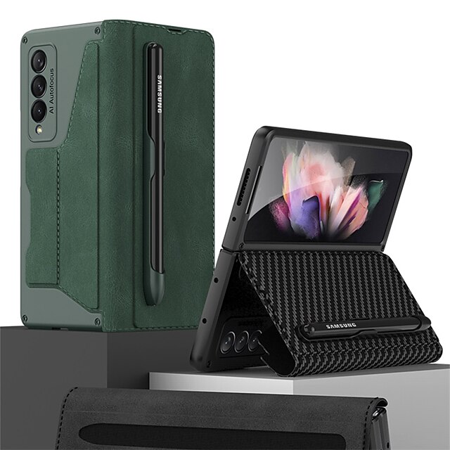 HOT ! Phone Case For Samsung Galaxy Z Fold 5 Z Fold 4 Z Fold 3 Full Body Case Card Holder Dustproof Double Sided Solid Colored PU Leather