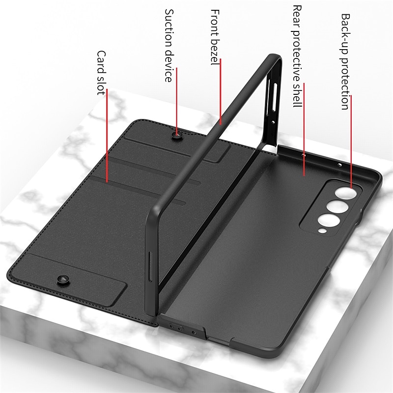 More information about Phone Case For Samsung Galaxy Z Fold 5 Z Fold 4 Z Fold 3 Full Body Case Card Holder Dustproof Double Sided Solid Colored PU Leather