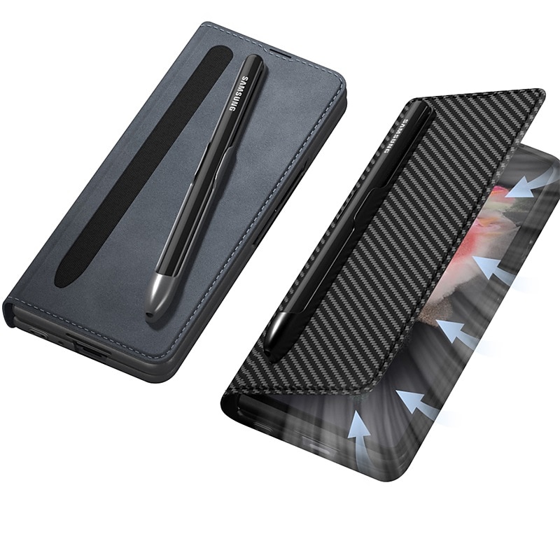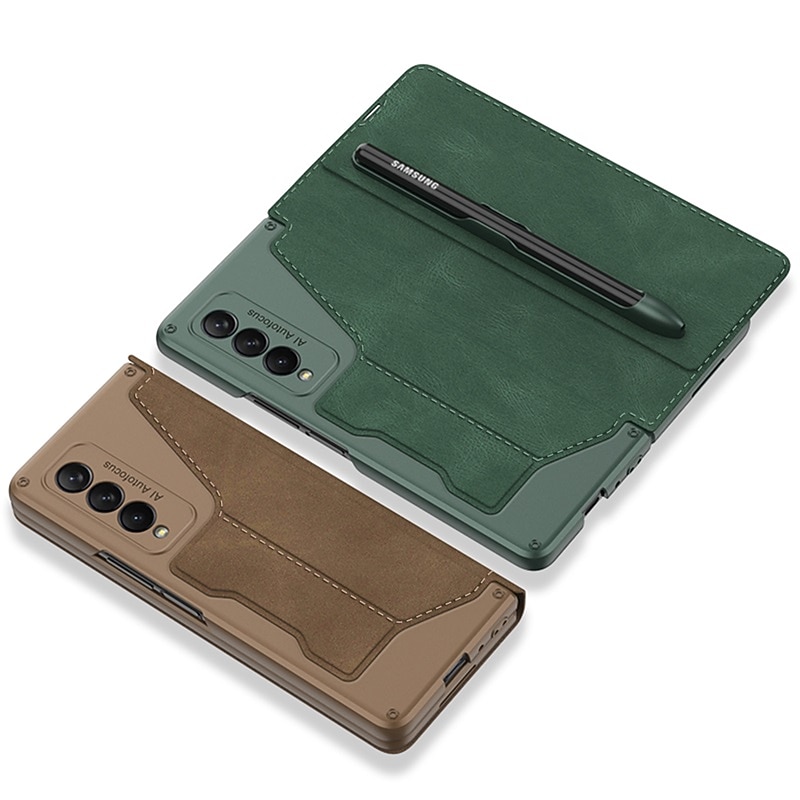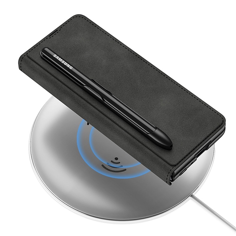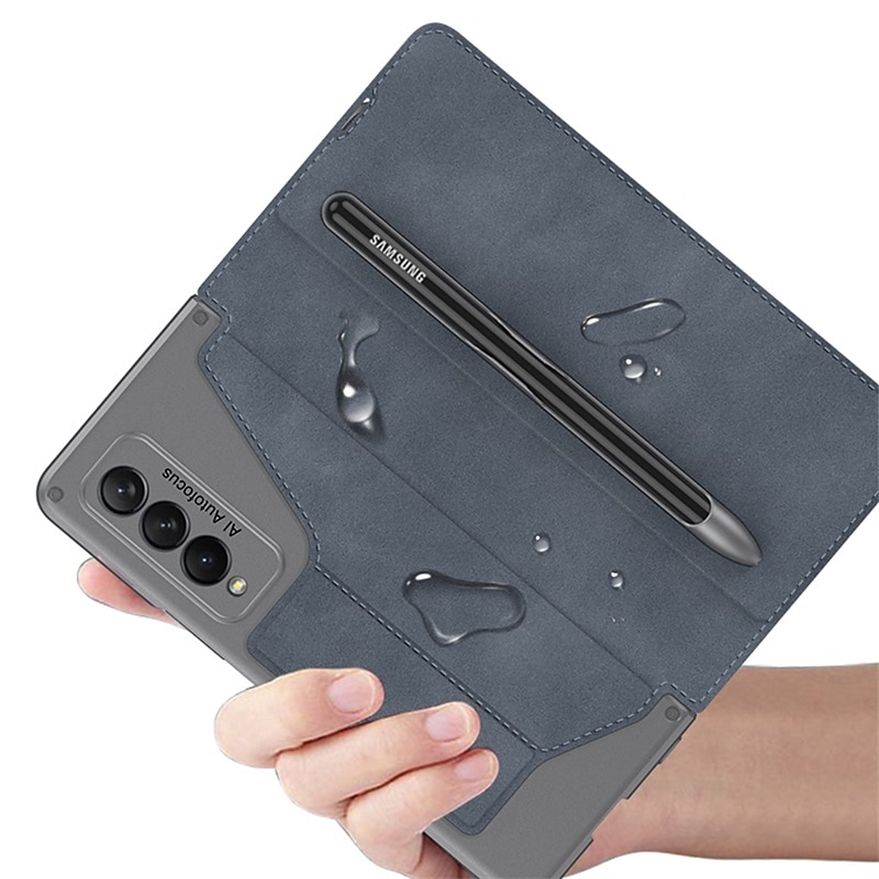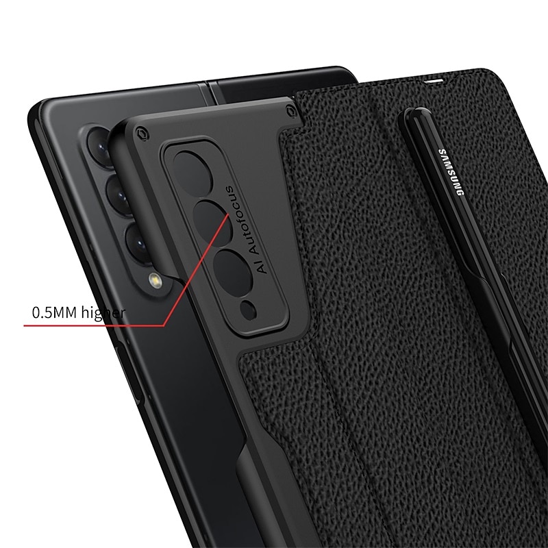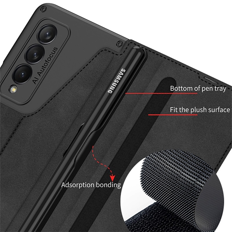 Highlights 1. Perfect Compatibility: This leather case is specially designed for Samsung Galaxy Z Fold 3, providing precise hole positions and comprehensive protection, ensuring a luxurious appearance. 2. High-Quality Material: Made with high-quality PU leather fabric, it provides a comfortable feel and all-round protection, making it perfect for business occasions. The internal frame is made of PVC, making it drop and scratch-resistant, ensuring your phone stays protected for longer. 3. Convenient Design: This case comes with a detachable S-pen holder with a hook and loop design, making it easy to disassemble and more convenient. The creative suction-cup closing method securely holds your phone, while the buckle-free design ensures your phone stays safe at all times. 4. Versatile Phone Holder: This flip leather case doubles as a phone holder, providing a comfortable viewing angle while watching movies and a comfortable operating angle while working. The built-in S-pen holder is an added bonus, making it a great helper. 5. Wireless Compatibility: The case is perfectly compatible with wireless charging and powershare charging, making it incredibly convenient to charge without having to remove the leather case. Also, charging via type-c cable is just as easy.