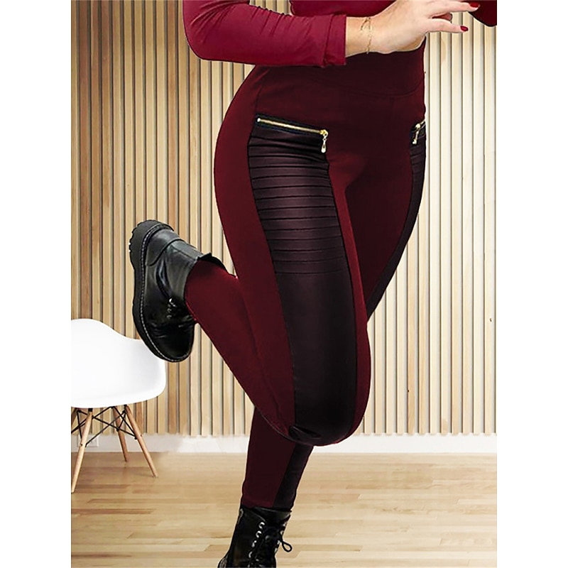 More information about Women's Leggings Cozy Leggings Fashion Streetwear Full Length High Waist Color Block Zipper Pocket High Cut Breathability Soft Comfortable Micro-elastic Outdoor Home Street Black Wine Fall Winter