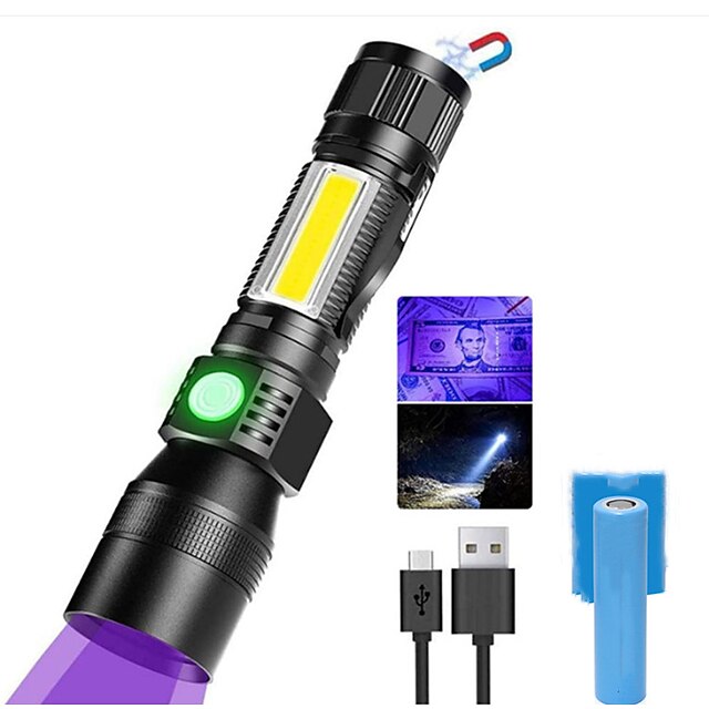 LED Light Black Light Flashlights / Torch UV Flashlight Waterproof 1200 lm LED LED 2 Emitters 7 Mode with Batteries and USB Cable Waterproof New Design Lightweight Easy Carrying Camping / Hiking 4