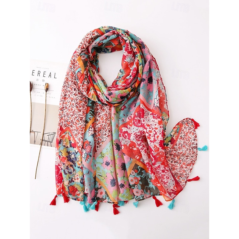 $11.99 - Floral Print Lightweight Scarf with Tassel Details, Boho Chic Style Wrap for Women, Perfect for Spring, Summer, and Casual Outfits 2025. Shop for cheap Women's Scarves online? Buy at lightinthebox.com on sale today!