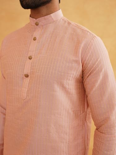 More information about Sojanya (Since 1958 Men'S Silk Blend Striped Pink Kurta & Off-White Churidar Pyjama Set