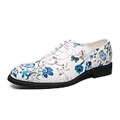 More information about Men's Oxfords Derby Shoes Dress Shoes Business Classic Flowers Printing Wedding Office & Career Party & Evening PU Lace-up White / Blue Summer Spring