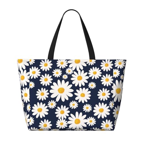 HOT ! Daisy Floral Large Beach Bag Waterproof Sandproof Swim Tote Pool Bag For Women With Zipper