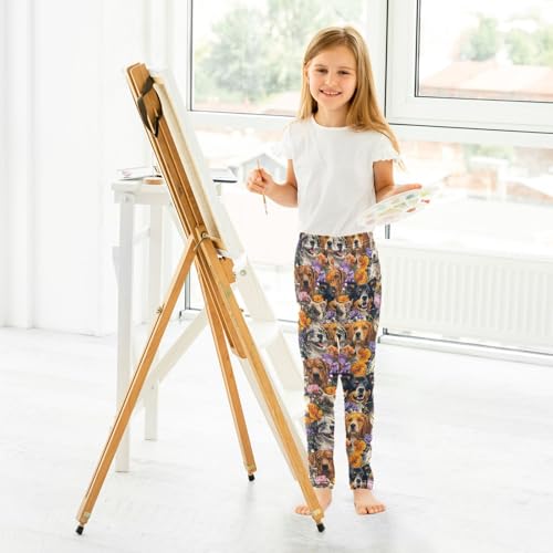 Girls' Athletic Leggings Ankle Length Yoga Dance Pants Kids Teen 4T Floral Dog 4