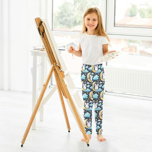 Cute Penguin on Moon and Star Girls Leggings Kids Yoga Pants Athletic Tights Pants 4-10 Years 4