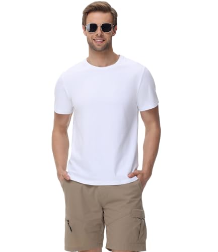 • FLEXIBLE REGULAR FIT: Engineered with 4-way stretch technology, these T-shirts move with your body without restriction. The regular fit balances freedom and structure, perfect for layering under shirts or wearing solo with jeans, shorts, or jogg.