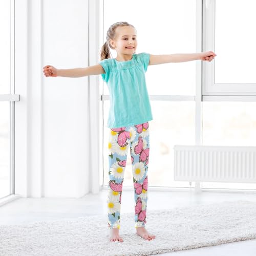 Pink Butterfly Daisy Girls Leggings Ultra Soft Compression Yoga Gym Pants for Kids 4-10T 4